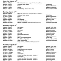 Schedule for students participating in the Leadership Adventure part of the Setting Sail orientation sessions.