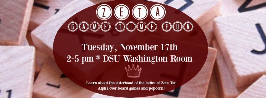 Zeta Tau Alpha Open Sisterhood Event: Zeta Game Time Fun: 2:00-5:00pm