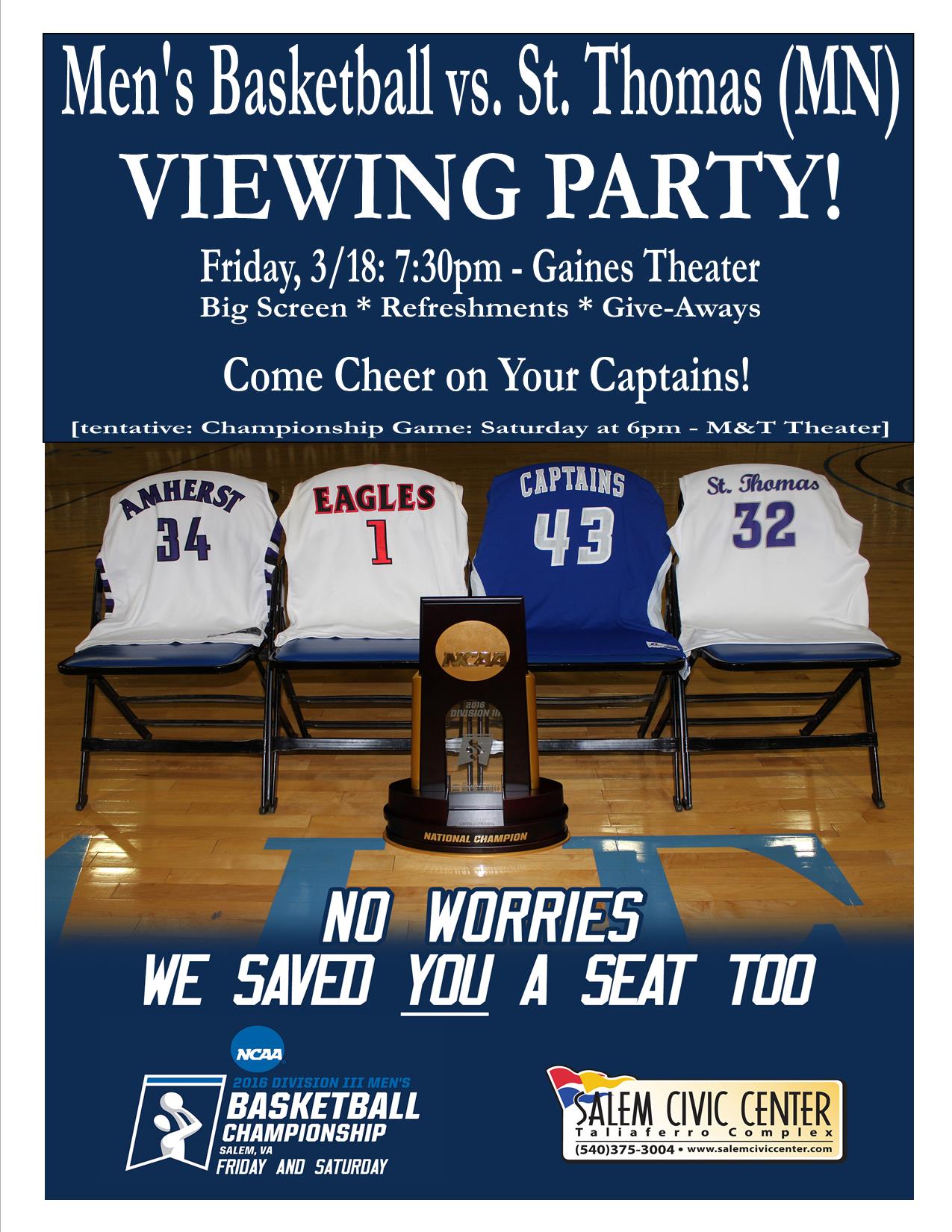 Men's Basketball Game Viewing Party in the Gaines Theater: 7:30pm