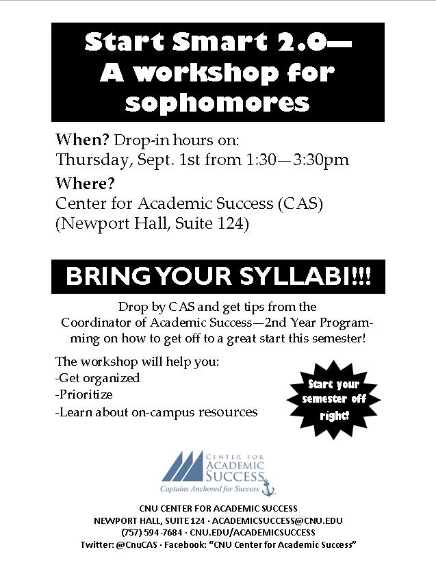 Start Smart 2.0 Workshop for Sophomores: 1:30-3:30pm