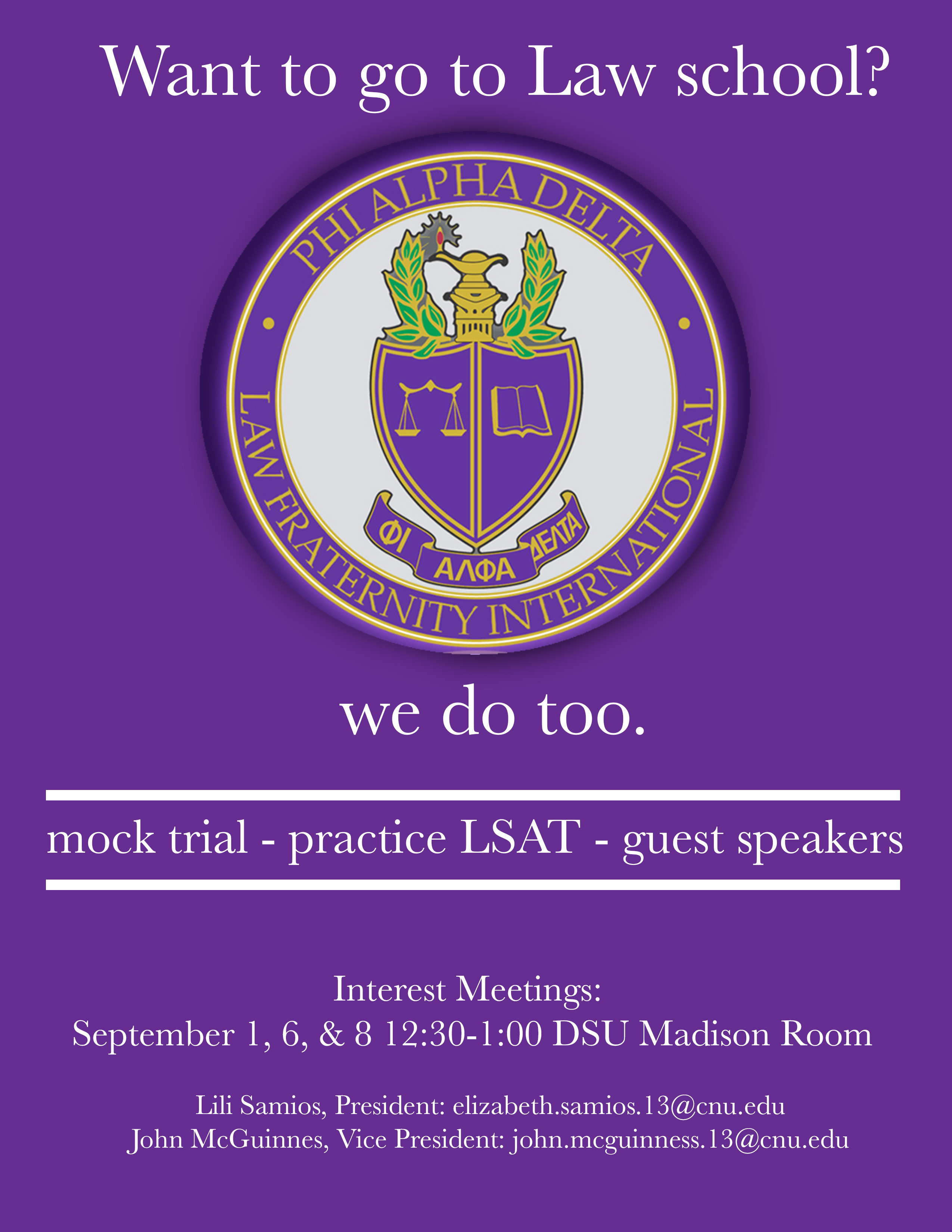Phi Alpha Delta Pre-Law Interest Meetings: 12:30-1:00pm