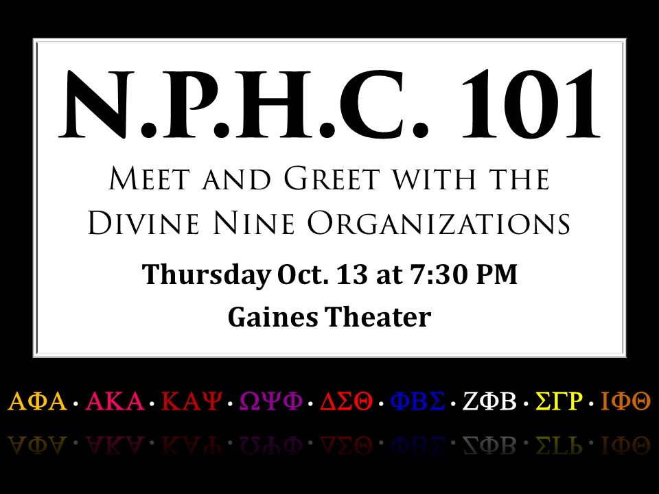 NPHC 101: 7:30pm