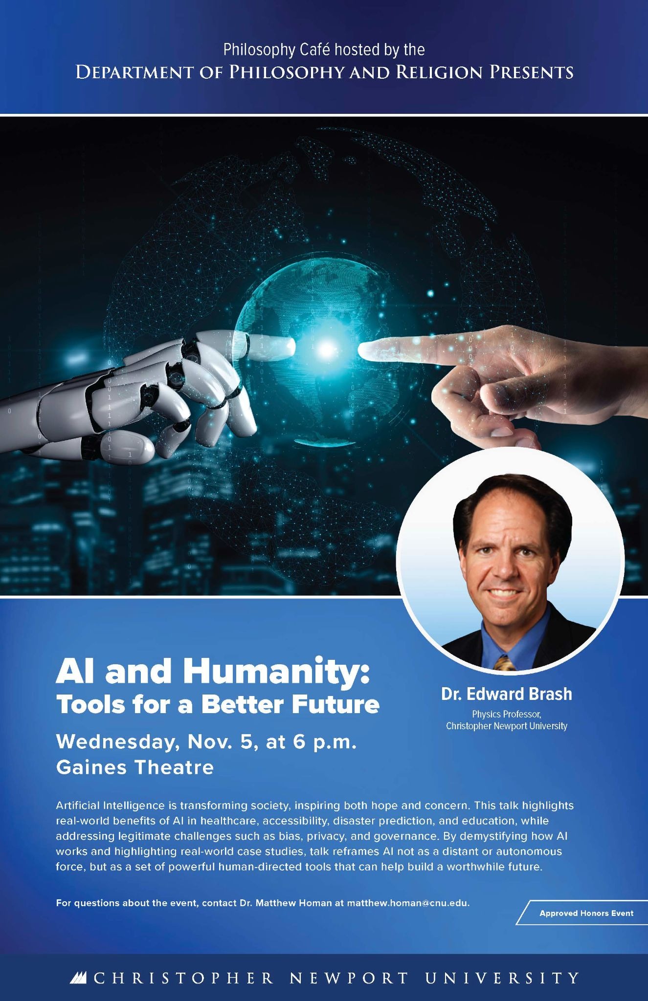 Announcement of a lecture by Dr. Edward Bash on how AI is transforming our world.